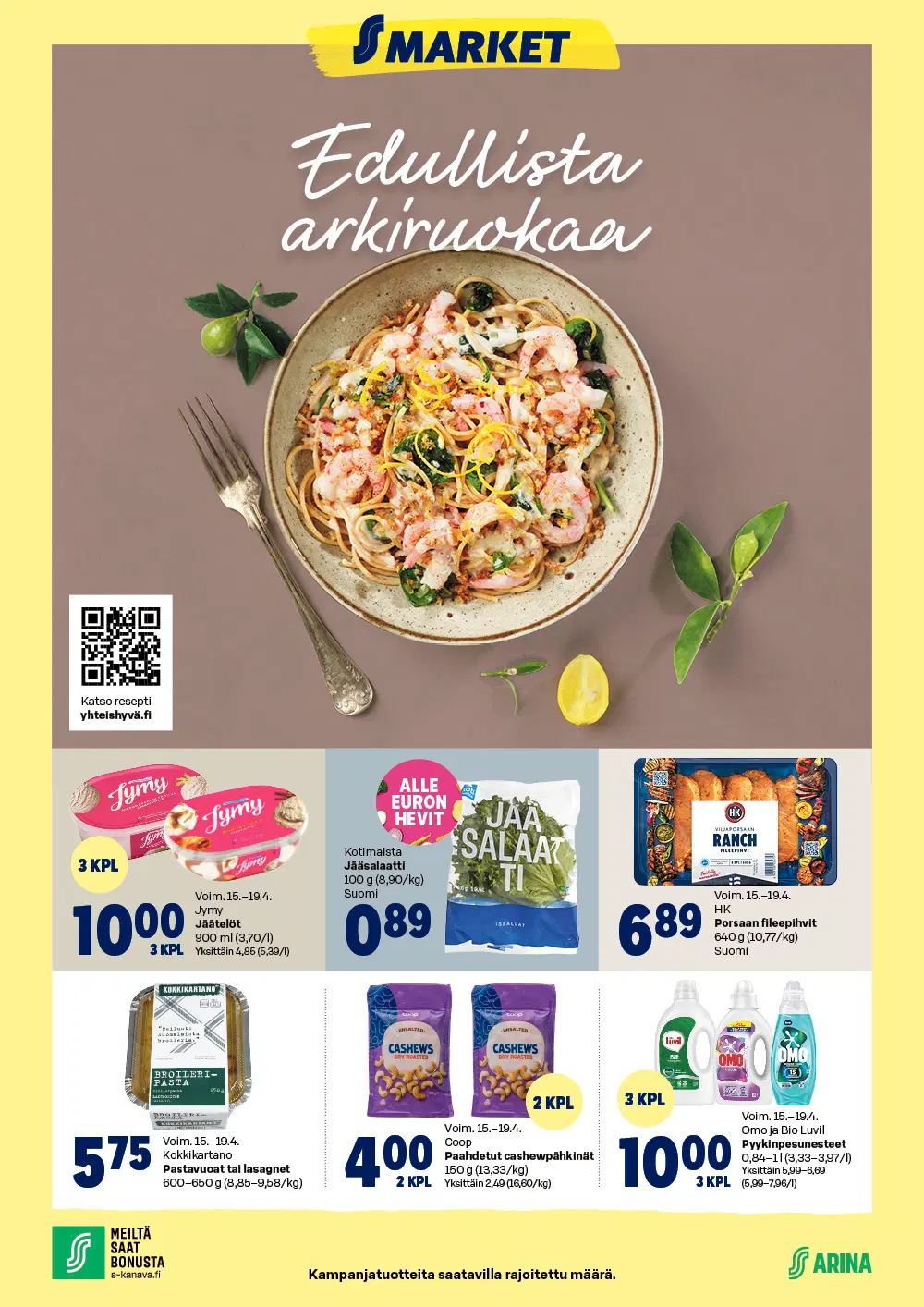 S-marketin viikon edut, hinnat voimassa 15.–19.4.