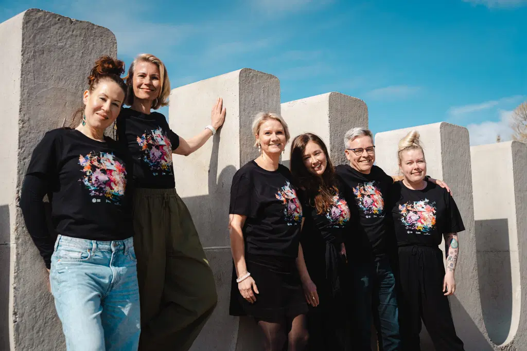 Arina ja Oulu2026 – Euroopan kulttuuripääkaupunki ovat allekirjoittaneet sopimuksen Arinan toimimisesta kulttuuripääkaupunkivuoden vapaaehtoistoimintaan pääyhteistyökumppanina. Yksi näkyvimmistä osaprojekteista Oulu2026-yhteistyössä on paikallisen taiteilijan, Susanna Sivosen kanssa toteutettava designyhteistyö. Kuvassa Kuvassa Oulu 2026:n yritysyhteistyön kumppanuuspäällikkö Matleena Aarikallio (vas.), Arinan henkilöstö- ja viestintäjohtaja Minna Salonen, hotellinjohtaja Päivi Kaarlela, taiteilija, muotoilija Susanna Sivonen, Arinan toimitusjohtaja Reima Loukkola ja Oulu2026:n vapaaehtoistoiminnan koordinaattori Anette Eksymä.